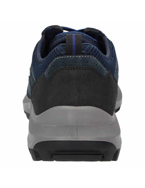 Outdoor-Halbschuh zum Schnüren aus hydrophobiertem Kalbvelour-Leder und Textil-Feinmesh am Einschlupf. Die Tex-Membrane sorgt dafür, dass kein Wasser durch das Obermaterial dringt. Innen durchgehend gefüttert mit textilem Feinmesh-Material und gepolsterter Leder-Decksohle. Die Decksohle ist herausnehmbar und zum Austausch mit einer eigenen Einlage geeignet. Die leichte Laufsohle aus einer PU-Kombination bietet mit dem groben Profil ein sehr gutes Laufgefühl.