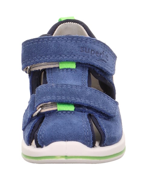 Die Sandale BOOMERANG begeistert nicht nur kleine Fußballfans. Vorne geschlossen und aus weichem Veloursleder sowie Textil gefertigt sorgt die superfit Lauflern-Sandale dafür, dass die ersten Schritte ganz unbeschwert gehen. Die Klettverschlüsse sind individuell verstellbar für eine optimale Passform. Der lässige Fußball, die Neon-Webbings und der farbige Streifen in der Sohle machen BOOMERANG außerdem zum tollen Hingucker.