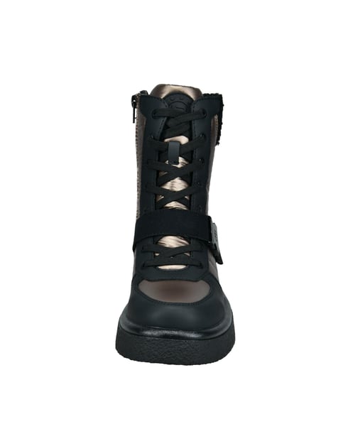 Wir präsentieren das neue moderne Design der wärmsten Stiefel in einem Farbmix aus Schwarz und Taupe. Mit warmen Futter und undurchlässigem schwarzem Material für die Zehen und die Fersenkappe sind diese Stiefel perfekt für die kalte Jahreszeit. Der dekorative Kunststoffgürtel und der Fellkragen mit dem geprägten TT.BAGATT-Logo verleihen dem Design einen Hauch von Coolness. Lassen Sie sich vom kalten Wetter nicht davon abhalten, mit diesen modischen und funktionellen Stiefeln stilvoll und komfortabel unterwegs zu sein.