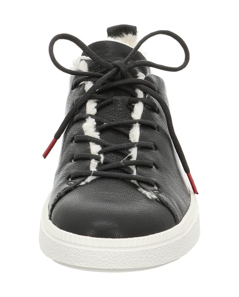 Warm gefüttert ist der Sneaker TURNA der ideale Wintergefährte für alle, die es sportlich mögen. Dabei blitzt das Teddyfutter dezent hervor, was für den individuellen Charme des Think! Schuhs sorgt. Zudem hat der Damenschnürer ein wintertaugliches Profil an der dämpfenden Latexsohle und bietet somit guten Halt. Das besonders weiche Ziegennappa bildet bei TURNA schließlich das edle Tüpfelchen auf dem i.