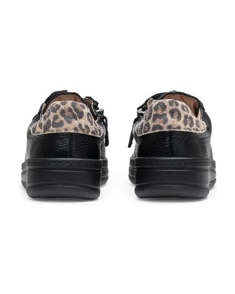 Dieser vornehme VITAFORM Damen Sneaker aus butterweichem Hirschleder vereint luxuriösen Tragekomfort mit stilvoller Raffinesse. Dank der Komfortweite H schenkt er auch anspruchsvollen Füßen mit mehr Volumen ein entspanntes Tragegefühl – ganz ohne einzuengen. Ein zusätzlicher Reißverschluss sorgt für komfortables Hineinschlüpfen, während das austauschbare Luftpolsterfußbett mit Echtlederbezug jeden Schritt samtweich abfedert. Der integrierte Shock-Absorber entlastet Ferse, Gelenke und Rücken spürbar – ideal für längere Tage auf den Beinen. Veredelt wird der Look durch ein stilvoll platziertes Animal-Print-Detail, das dem Sneaker eine dezente Prise Extravaganz verleiht. Ein bisschen Wildheit darf auch sein! Ein Modell für Frauen, die Wert auf erstklassige Materialien, durchdachten Komfort und modische Eleganz legen.