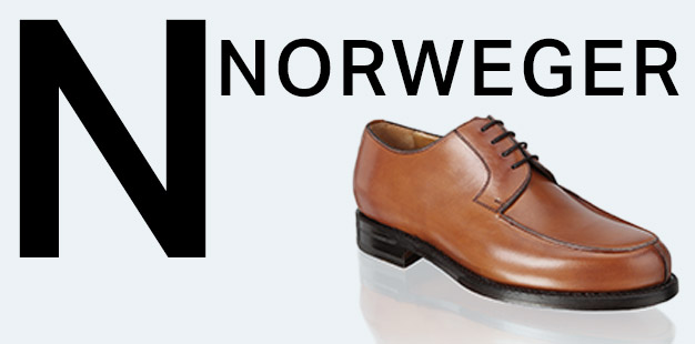 Der Norweger, auf dem Derby basierend, ist seiner Herkunft nach benannt und wurde von den Arbeitsschuhen der norwegischen Fischer entlehnt. Die ursprüngliche Konstruktionsweise des Schuhs mit unsichtbaren bestochenen Nähten stammt von den Eskimos. Typisch ist die unverwechselbare, etwas wulstige, vertikal verlaufende Naht an der Spitze des Schuhs. Norweger werden häufig aus sportlich geprägtem Leder gearbeitet und mit einer strapazierfähigen Gummi-Laufsohle versehen. Zudem kennzeichnend ist der Blatteinsatz im Vorderbereich des Schuhs, der von einer rundherum laufenden Naht gesäumt wird. Der Norweger wird tendenziell eher im Freizeitbereich getragen. Besonders geeignet ist er für Spaziergänge in Natur und Wald, denn er bietet ein sehr angenehmes Schuhklima und einen hervorragenden Tragekomfort. Es gibt allerdings auch die französische Variante mit einer Ledersohle, wo die Nähte dann dezent gehalten sind und die Herrenschuhe somit sehr anzugtauglich sind.