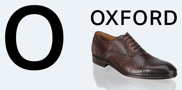 Ähnlich wie der Derby, ist der Oxford ein Englischer Schuh, der nach der Stadt bzw. Grafschaft benannt wurde, in der er seinen Ursprung hat. Seit 1920 ist er in seiner heutigen Form bekannt. Zu diesem Zeitpunkt wurde der Schuh erstmals dick besohlt, welches enorme Vorteile auf den Laufkomfort und die Qualität hatte. Einer der elegantesten Herrenschuhe, die zum Anzug getragen werden. Hauptmerkmal ist die geschlossene Schnürung. Die V-förmig zulaufenden Verschlussteile enden unter dem Vorderteil. Unterschieden wird zwischen dem "One Pice Oxford", also einem Schuh bei dem der gesamte Schaft aus einem Stück Leder besteht und einem "Plain Oxford", dessen Vorderteil nahtlos ist. Ein weiteres wichtiges Modell, bei dem das Vorderteil eine Quernaht besitzt, wird als "Captoe Oxford" bezeichnet. Schuhe mit einer sogenannten "geschlossenen Schnürung" erhalten dadurch eine besonders elegante Erscheinung. Gerade der Smoking ist nach wie vor der ideale Partner zum Oxford-Schuh.