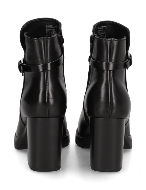 Elegantné členkové čižmy Lazzarini, vyrobené z jemnej čiernej hladkej kože s jemným remienkom na členku, kombinujú sofistikovanosť s moderným komfortom. Praktický zips uľahčuje obúvanie a vyzuvanie, zatiaľ čo textilná podšívka ponúka pohodlné nosenie. S 8 cm platformovým podpätkom tieto čižmy dodávajú ženskú eleganciu a bezpečné nosenie každému outfitu. Jednoduchý a sofistikovaný dizajn z nich robí perfektný všestranný kúsok – štýlovo sa hodia k nohaviciam, sukniam alebo šatám.